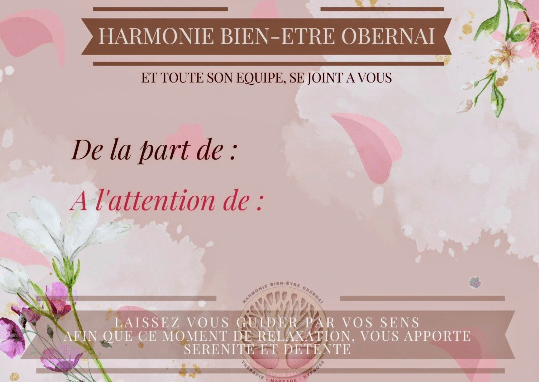 Que ce soit pour un anniversaire, un mariage, ou simplement pour faire plaisir à un proche, une carte-cadeau de notre établissement est le choix parfait. Vous pouvez choisir entre offrir un type de massage spécifique, tel que le massage détente énergétique, le massage dos ou simplement déposer une somme à utiliser selon le désir du bénéficiaire.